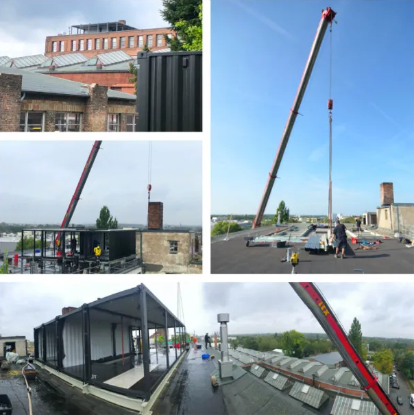 The necessary extensions to the complex are being implemented with high design standards and complement the valuable historic buildings with clean lines and modern concepts. The use of used freight containers for new spaces emphasizes the industrial charm of the location and creates an exciting dialogue with the old buildings.
