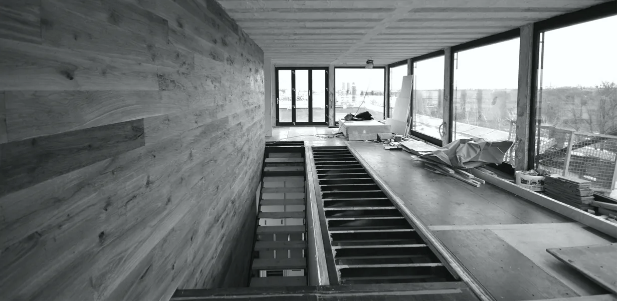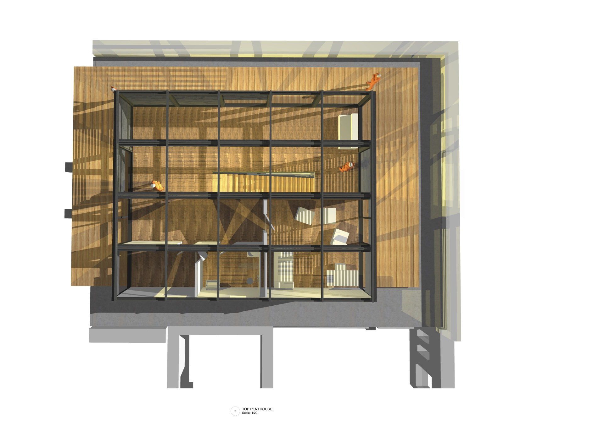 Der Entwurf ermöglicht Wohnen über zwei Ebenen mit jeweils unterschiedlichen räumlichen Konzepten