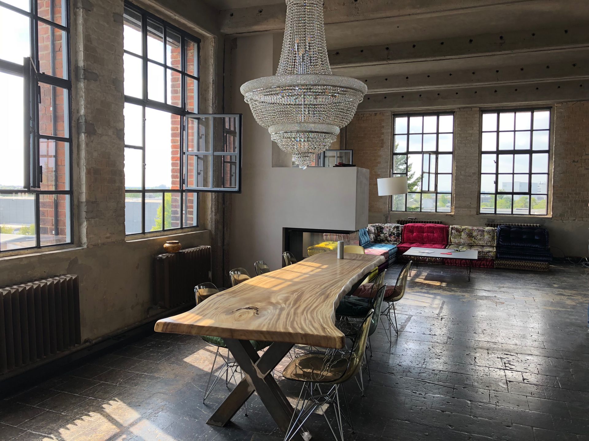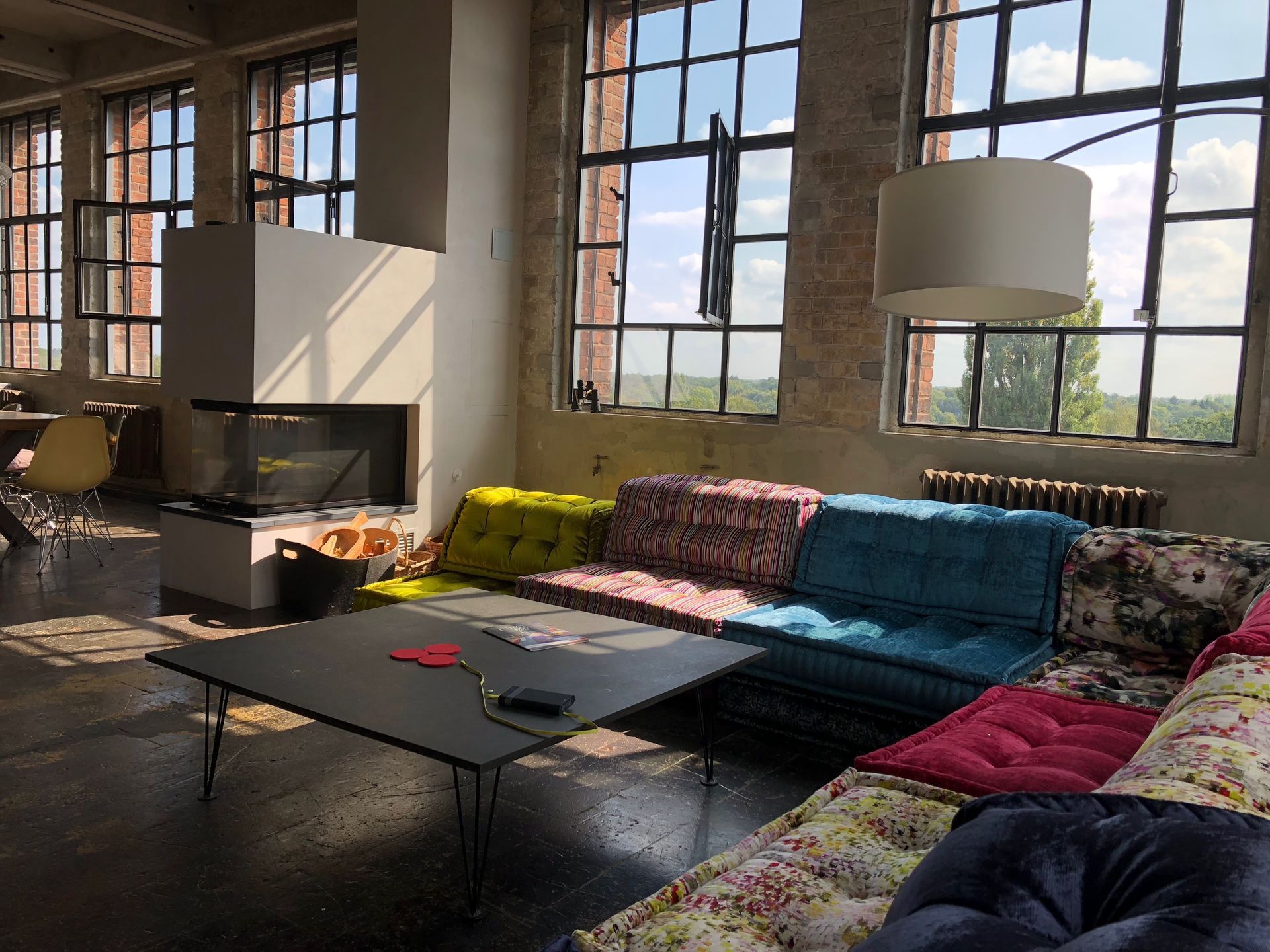 – in der unteren Ebene als Loft in dem Industriebau mit Lochfassade, massiv, introvertiert