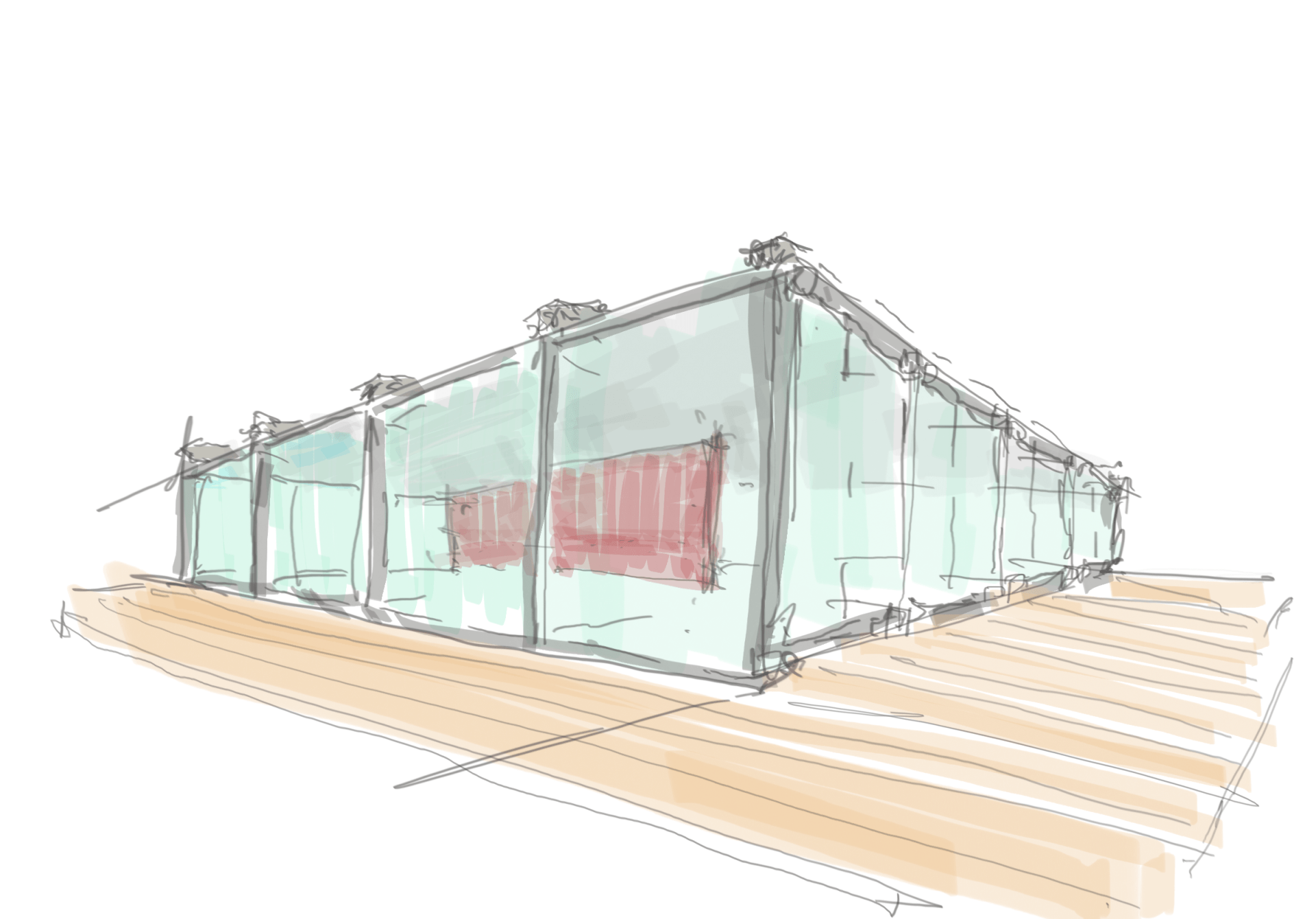 – auf dem Dach in einem lichtdurchfluteten Pavillon in dem die Grenzen zwischen Innen und Außen scheinbar aufgehoben sind.